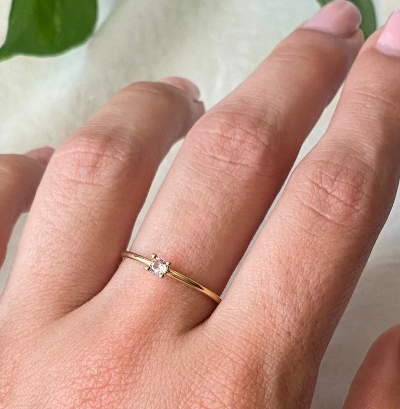 انگشتر طلا مینیمال سولیتر تک یاسی صورتی 511043