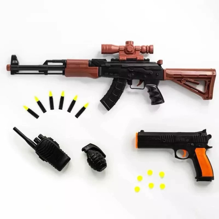 اسباببازی تفنگ کلاش با کلت مدل آهو یک مجموعه هیجانانگیز برای کودکان است که شامل دو تفنگ با طراحی جذاب و واقعگرایانه میباشد. این مجموعه معمولاً از پلاستیک مقاوم ساخته شده و برای بازیهای تخیلی کودکان ایمن است. تفنگ کلاش دارای ظاهر قدرتمند و بینظیر است، در حالی که کلت به دلیل طراحی کوچکتر و خوشدست، برای دستهای کوچک کودکان مناسب است. این اسباببازی با ایجاد حس ماجراجویی، کودکان را به بازیهای پرتحرک و خلاقانه تشویق میکند. هر دو تفنگ این مجموعه تیرهای نرم یا پلاستیکی پرتاب میکنند که بدون خطر هستند. همچنین، مکانیزم ساده آنها باعث میشود کودکان به راحتی بتوانند از آنها استفاده کنند. این محصول برای هدیه دادن در مناسبتهای مختلف مانند تولد یا جشنها بسیار مناسب است. ست تفنگ کلاش و کلت مدل آهو میتواند ساعتها سرگرمی و لذت برای کودکان به ارمغان بیاورد.