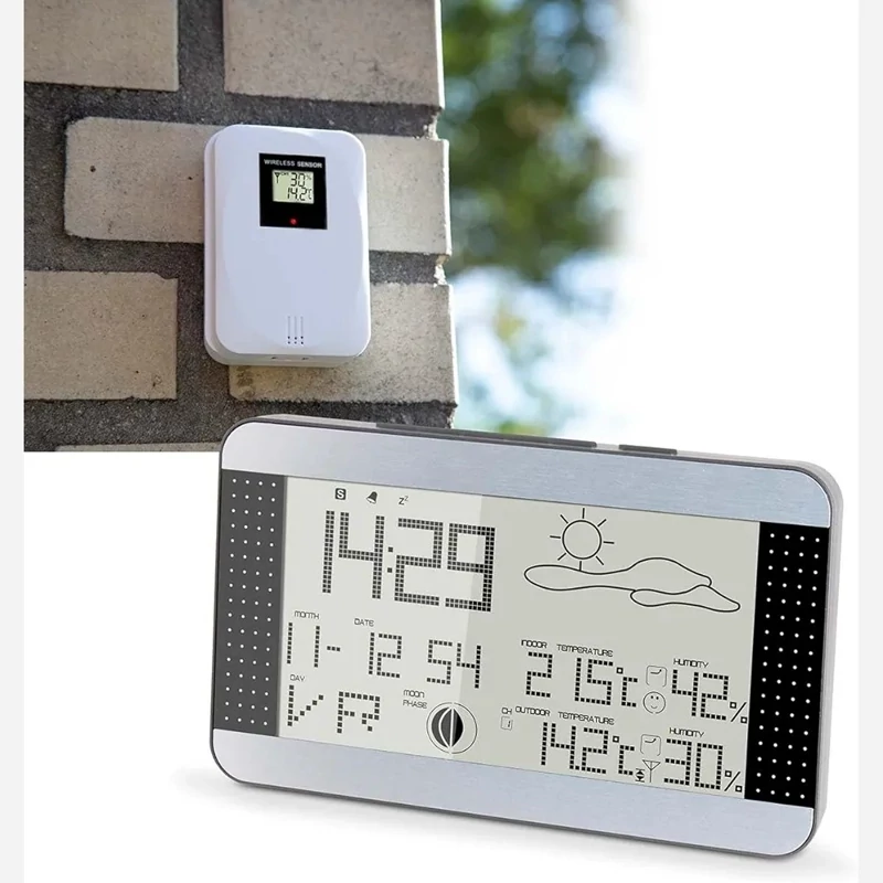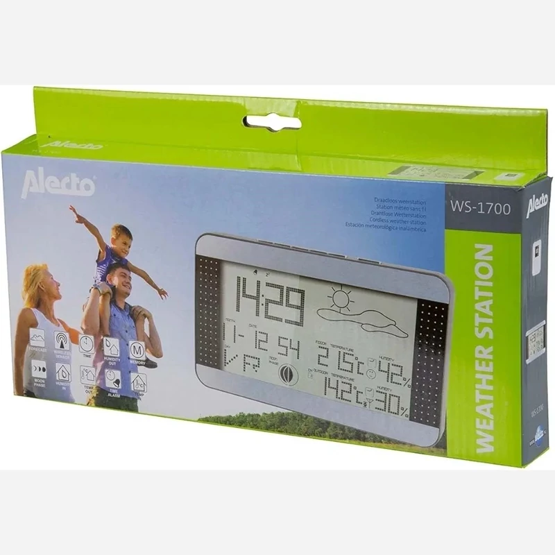 Alecto WS – 1700 یک ایستگاه هواشناسی جذاب با سنسور بیسیم است. با صفحه نمایش بزرگ و واضح، پیشبینی آب و هوا به صورت متحرک ارائه میشود.