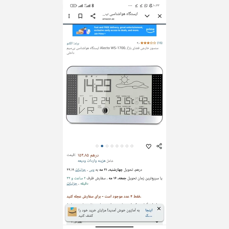 قیمت سایت آمازون برای این محصول به درهم امارات 1550درهم میباشد.