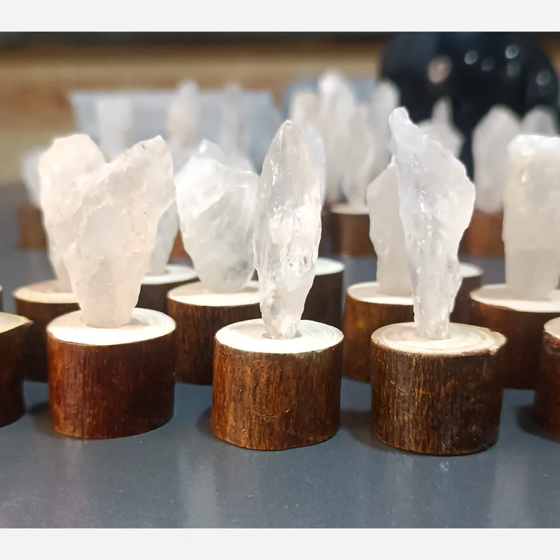 بلور کوارتز سایز 2 پایه چوب جوهر و جلا خورده