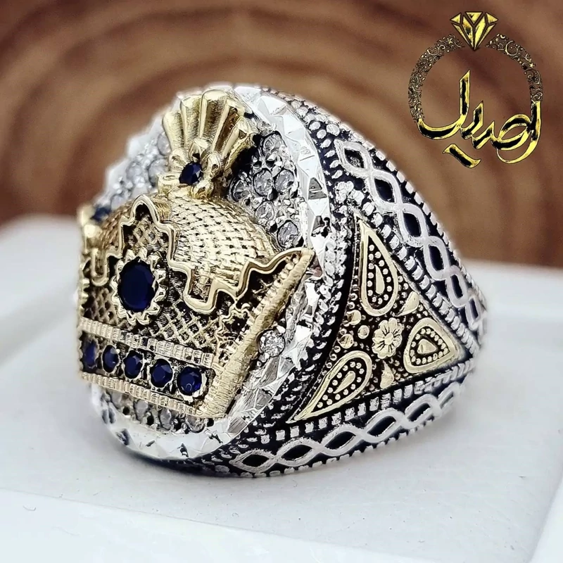 انگشتر نقره طرح تاج آیینه کاری با مخراج 17 عدد اتمی جهت زیبایی وزن 18 گرم