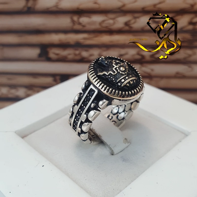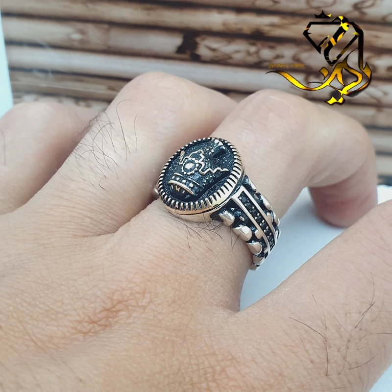 انگشتر نقره مردانه طرح اسپرت ( تاج ) قسمت تاج و بالا برنجی رنگ ثابت. عیار 925 استاندارد وزن حدودی 12 گرم