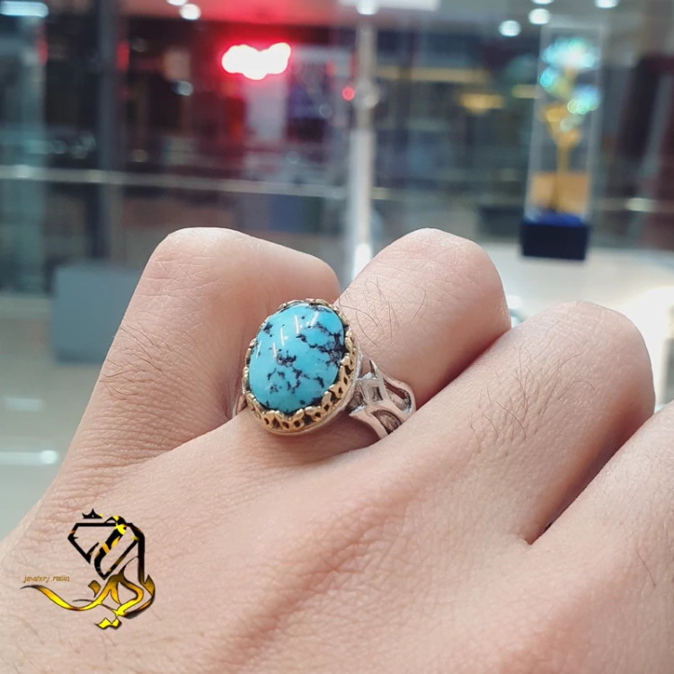 انگشتر نقره 925 عیار با نگین فیروزه نیشابوری اصلی و طبیعی