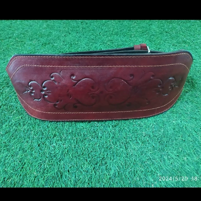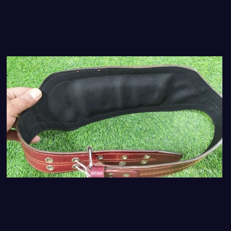 کمربندبدنسازی چرم طبیعی گاومیش پهن 14 سانتی بالشتک دار سگک دار رنگ قهوه ای