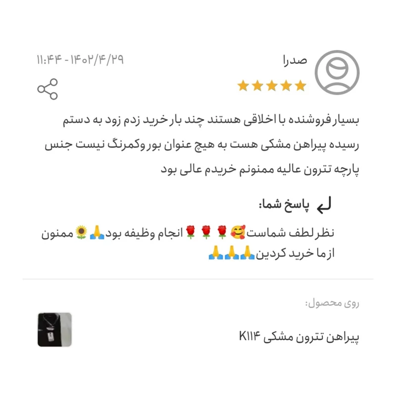 در صورتی که این محصول باکیفیت را نپسندید و قصد مرجوع کردن داشته باشید، علاوه بر هزینه پست مرجوعی،