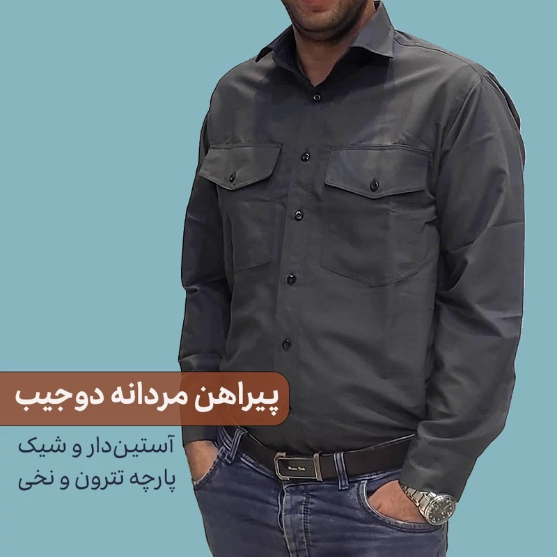 پیراهن مردانه دو جیب آستین دار هم یک استایل شیک و اسپرت است و هم برای محیط های کاری و استفاده از دوجیب مناسب است. این پیراهن مردانه تترون و نخی، لطیف و نرم و سبک و باکیفیت است. جوانان و آقایان شیک پوش