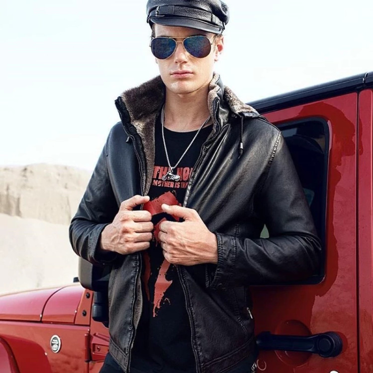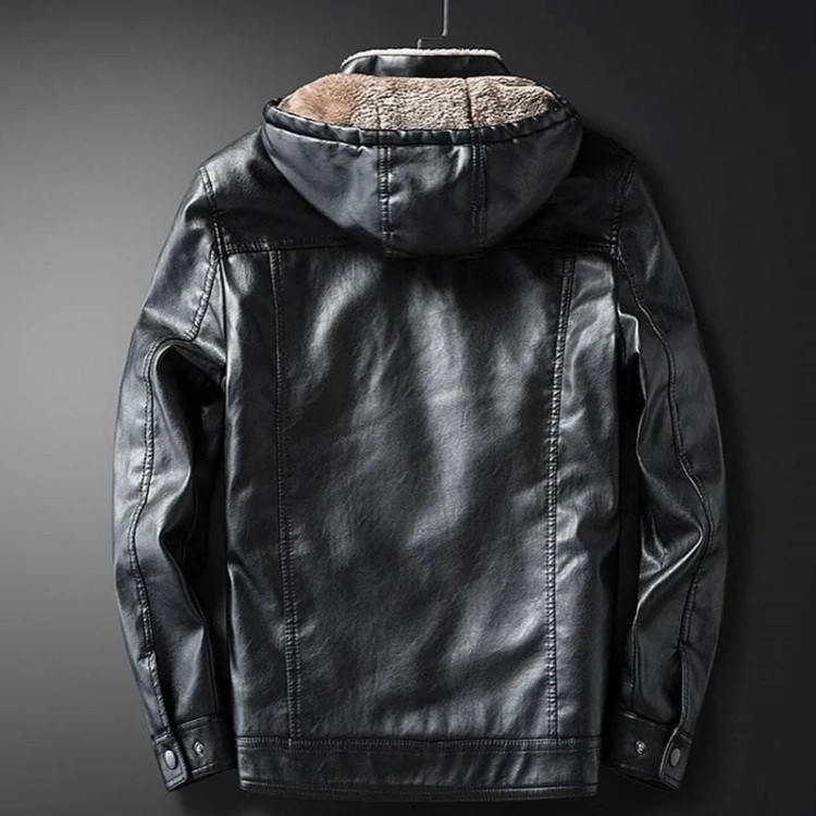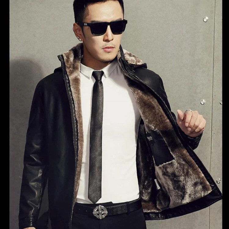 کاپشن چرم مردانه بوفالو کلاهدار داخل خز