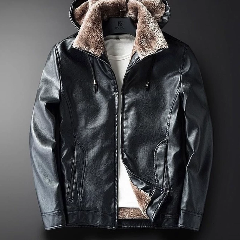 کاپشن چرم مردانه بوفالو کلاهدار داخل خز