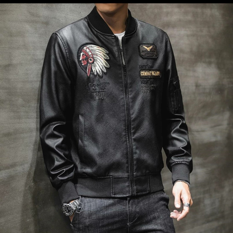 کاپشن چرم مردانه طرح سرخ پوستی استر خز