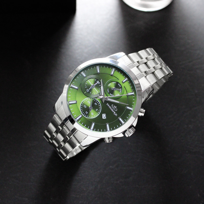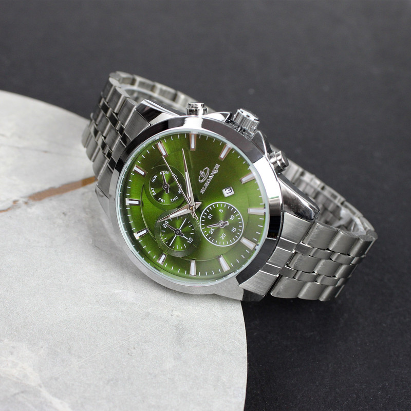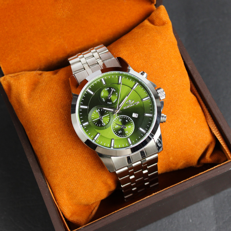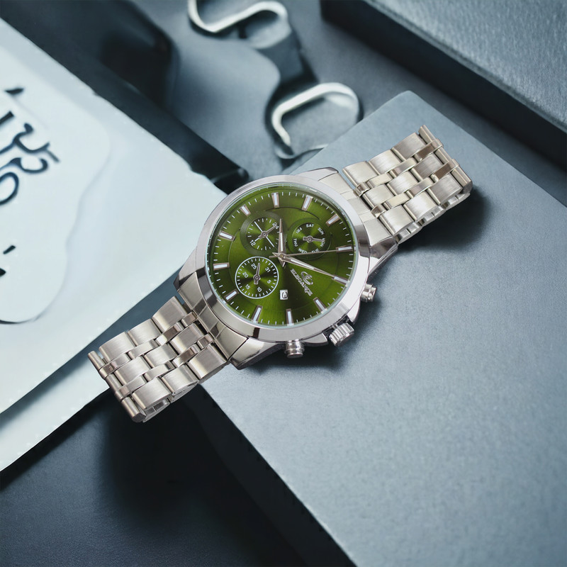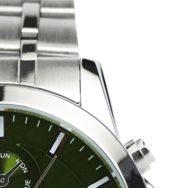 صفحه ی ساعت این برند دارای شیشه با سختی بالا می باشد، همچنین قلب تپنده ی آن یعنی موتور ساعت، از نوع کوارتز است. به دلیل اقتصادی بودن این ساعت فقط موتور اصلی و تقویم آن کار میکند و سه موتور بقیه نمایشی هستند . این ساعت به شکل دایره طراحی شده است که دارای قطر 42 میلی متر و بی نهایت ظریف است .