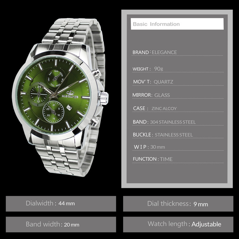 این ساعت جزء ساعت های کلاسیک و آنالوگ محسوب می شود و مناسب برای آقایان خوشتیپ می باشد. ساعت مچی الگانس باتری بسیار قوی دارد و دارای بند استیل می باشد. بند استیل، اغلب محبوب ترین انتخاب برای آقایان است.
