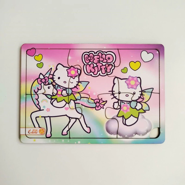پازل چوبی A5 پشت وایت بردی 6 تکه طرح هلو کیتی - نارنگی لند (نو، قسطی، با تخفیف)