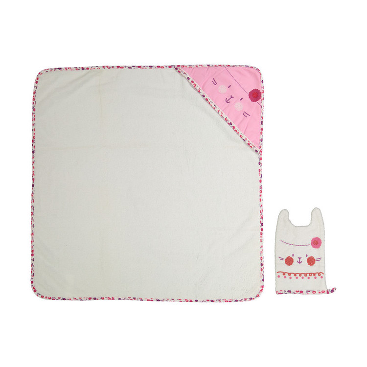 - این محصول شامل یک حوله حمام و یک لیف نوزادی - یک طرف حوله قابلیت آبگیری - دارای کلاه - روی لیف گل دوزی شده - لیف ست دارای بند کوتاهی برای آویزان کردن این محصول - ابعاد حوله 80 × 80 سانتیمتر و ابعاد لیف 14 × 20 سانتیمتر