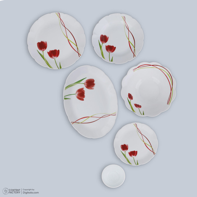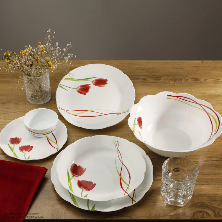 اقلام سرویس: ظرف سالاد , دیس , بشقاب غذاخوری , بشقاب خورشخوری , پیشدستی , پیاله