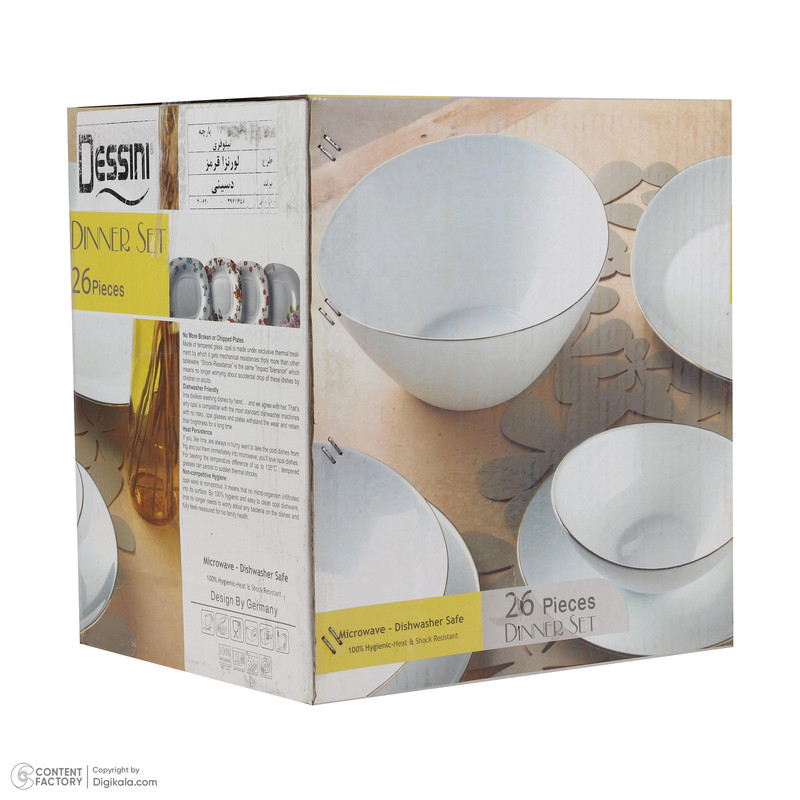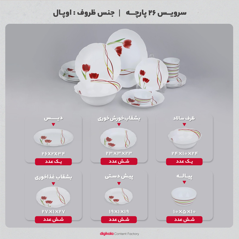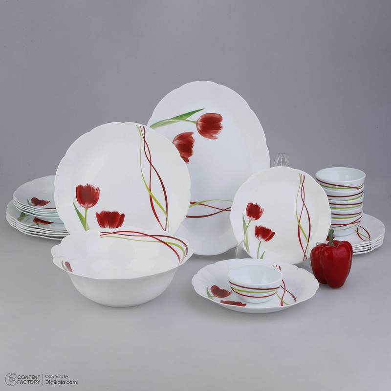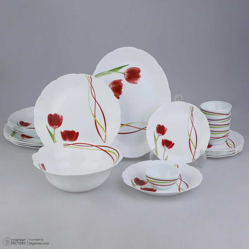 اقلام سرویس: ظرف سالاد , دیس , بشقاب غذاخوری , بشقاب خورشخوری , پیشدستی , پیاله