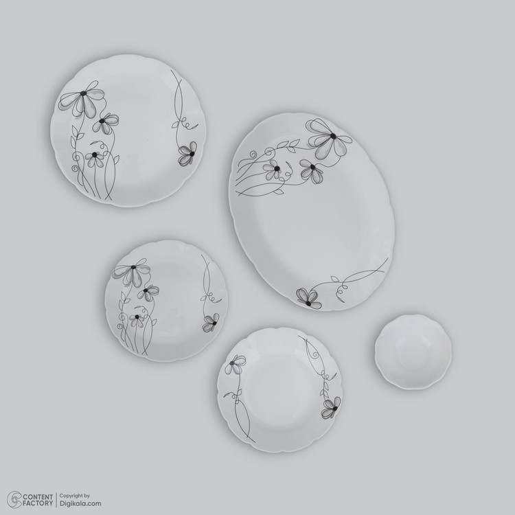 اقلام سرویس: دیس , بشقاب غذاخوری , بشقاب خورشخوری , پیشدستی , پیاله