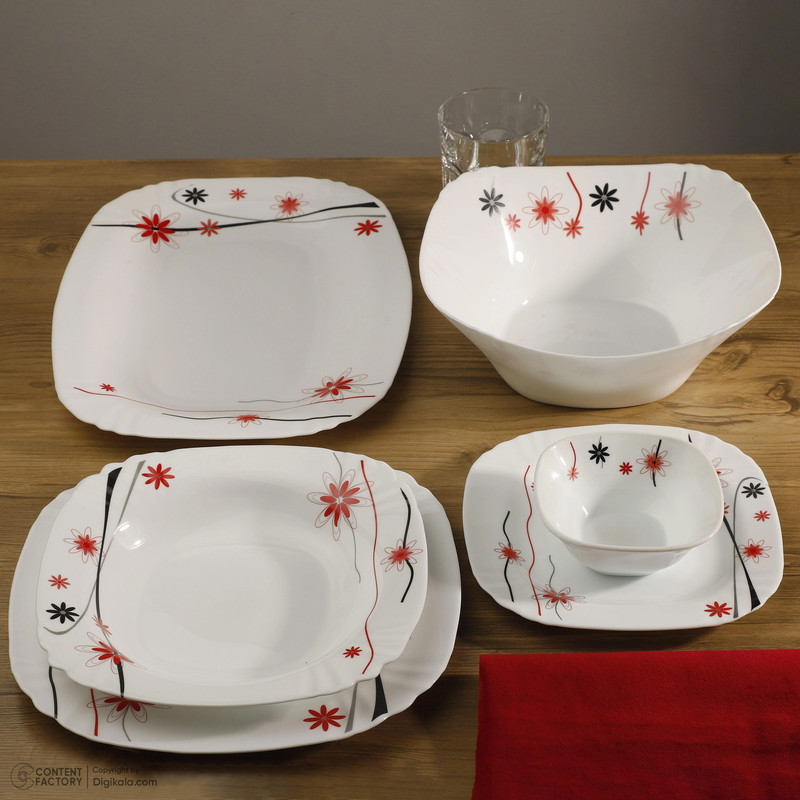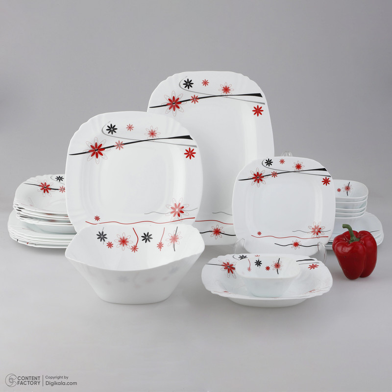 اقلام سرویس: ظرف سالاد , دیس , بشقاب غذاخوری , بشقاب خورشخوری , پیشدستی , پیاله