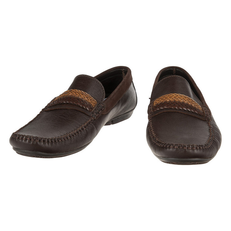 کفش مردانه دارای فرم یکسره رویه طرح دار دارای دوخت برجسته در قسمت رویه دارای بافت تزیینی مناسب برای استفاده روزمره
