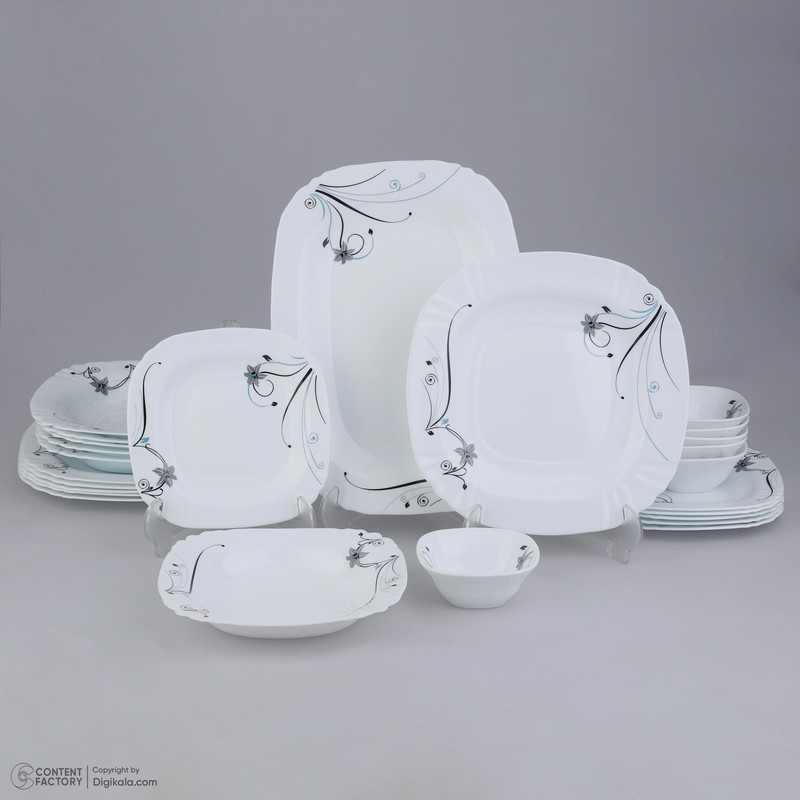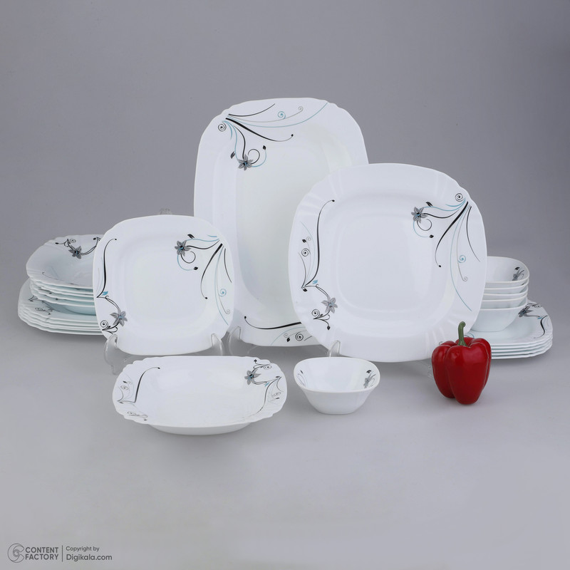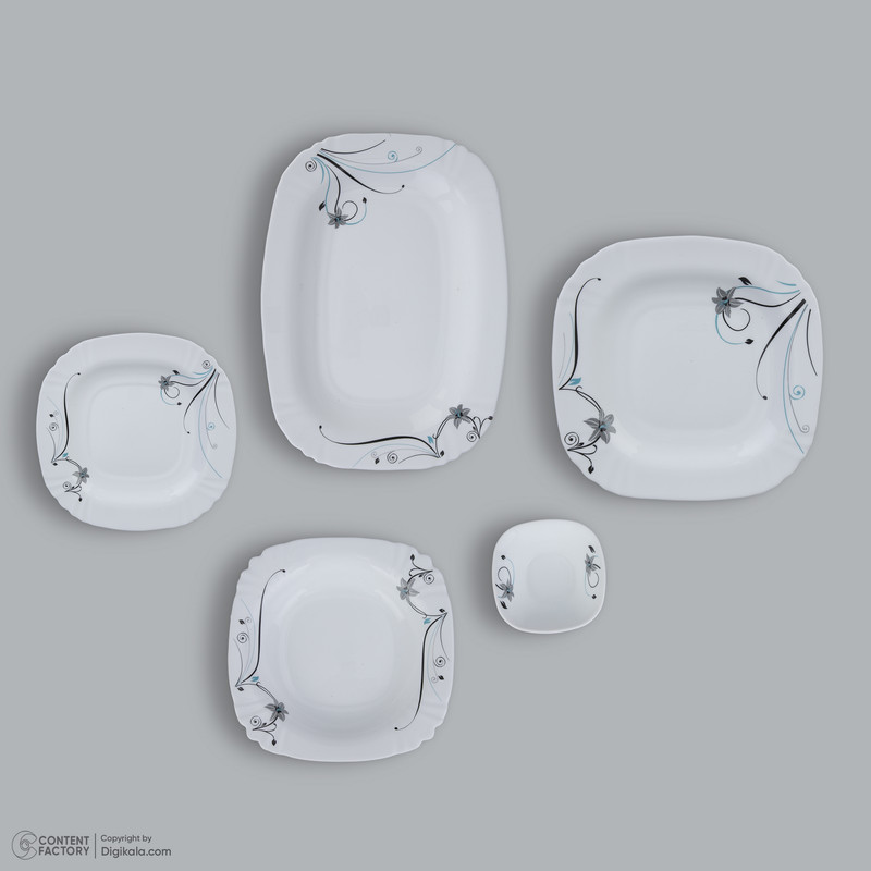 اقلام سرویس: دیس , بشقاب غذاخوری , بشقاب خورشخوری , پیشدستی , پیاله