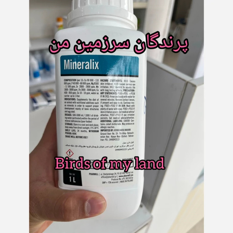 مینرالیکس یک محلول حمایتی حاوی مواد معدنی شامل کلسیم، فسفر، منیزیم و عناصر کمیاب شامل منگنز، آهن، روی، مس و کبالت می باشد که به منظور پیشگیری و درمان کمبودهای مواد معدنی در پرندگان زینتی استفاده میگردد.