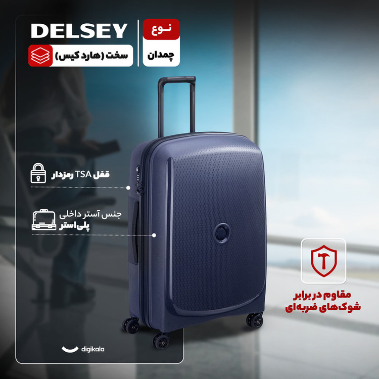 چمدان دلسی مدل Belmont از طراحی مستحکم و مقاوم در برابر ضربه برخوردار است و برای سفرهای خانوادگی انتخابی مناسب محسوب میشود. رویه این چمدان از پلیپروپیلن ساخته شده که دوام و استحکام بالایی دارد. ابعاد بزرگ و جادار چمدان فضای کافی برای قرار دادن تمام وسایل مورد نیاز سفر را فراهم میکند. استفاده از پلیپروپیلن علاوه بر مقاومت بدنه، باعث شده وزن چمدان در حد قابلقبول باقی بماند؛ بنابراین میتوان لوازم بیشتری را در آن جای داد، بدون آنکه حمل آن دشوار شود و در عین حال از امنیت و سلامت وسایل داخل آن اطمینان داشت.