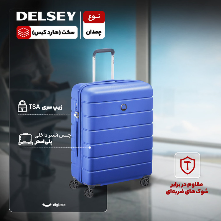 چمدان دلسی مدل لاگوس لایت کد 3870810 سایز متوسط ارتفاع 66 سانتی متر