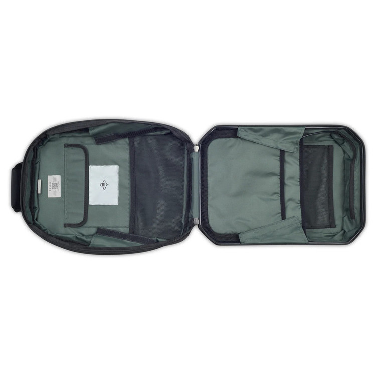 بند مخصوص نصب بر روی دسته چمدان، امکان اتصال آسان به چمدانهای چرخدار را فراهم کرده و حمل آن را در سفرهای طولانی تسهیل مینماید. این کولهپشتی با ابعاد ۲۹.۵ سانتیمتر طول، ۴۱.۵ سانتیمتر ارتفاع و ۲۱ سانتیمتر عمق طراحی شده است. حجم داخلی آن ۲۲ لیتر است که با استفاده از زیپ گسترشدهنده، تا ۲۶ لیتر قابل افزایش است. جنس بدنه از ترکیبی از پلیکربنات (۵۰٪)، پلیاستر (۴۰٪) و نایلون (۱۰٪) ساخته شده که دوام و استحکام بالایی را تضمین میکند.