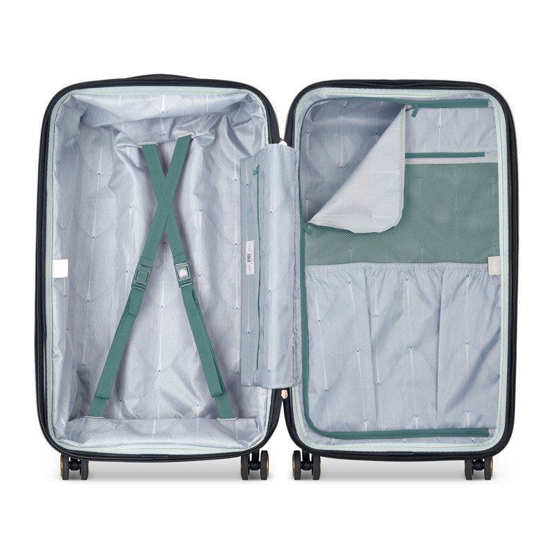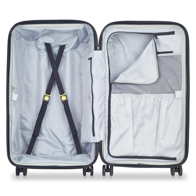 یک چمدان هوشمند می باشد. SHADOW 5.0 مجهز به نشانگر اضافه وزن ثبت شده DELSEY است که در دسته کناری ادغام شده است. این ویژگی بدون باتری به شما امکان میدهد بفهمید که چمدان شما تا حداکثر وزن مجاز است، بنابراین شما را از پرداخت هزینه اضافی در گیت فرودگاه خلاص میکند. با چمدان های آسیب دیده گمرک خداحافظی کنید. قفل ترکیبی TSA شما را قادر می سازد چمدان خود را با استفاده از یک کد شخصی ایمن کنید و در عین حال به اداره ایمنی حمل و نقل (TSA) اجازه می دهد تا چمدان شما را بدون آسیب رساندن به آن با استفاده از کلید ویژه بررسی کند. چمدان به سیستم بسته شدن فوق ایمن ثبت شده DELSEY PARIS مجهز شده است که زیپ SECURITECH® 2 نام دارد. این سیستم بسته شدن منحصربفرد تا سه برابر بیشتر از یک زیپ معمولی در برابر نفوذ مقاوم است، امنیت مطلوبی را برای چمدان شما فراهم می کند. قفل ترکیبی TSA و زیپ اصلی ضد سرقت بهترین متحدان شما برای سفر با آرامش کامل هستند. عملی بودن و طراحی ارگونومیک از ویژگی های اصلی این چمدان است. فرمت نوآورانه آن به همراه چهار چرخ دوتایی سخت و بسیار قابل مانور آن باعث میشود که به راحتی در هر کجا که میروید بچرخید. شکل مربع آن فرصت های جدیدی را در مسیر سفر شما ایجاد می کند و آن را برای سفر با ماشین یا قطار ایده آل می کند. آستر SHADOW 5.0 از 100% مواد بازیافتی ساخته شده است. با در نظر گرفتن راحتی طراحی شده است، می توان آن را جدا کرد و در دمای 30 درجه در ماشین شستشو داد!
