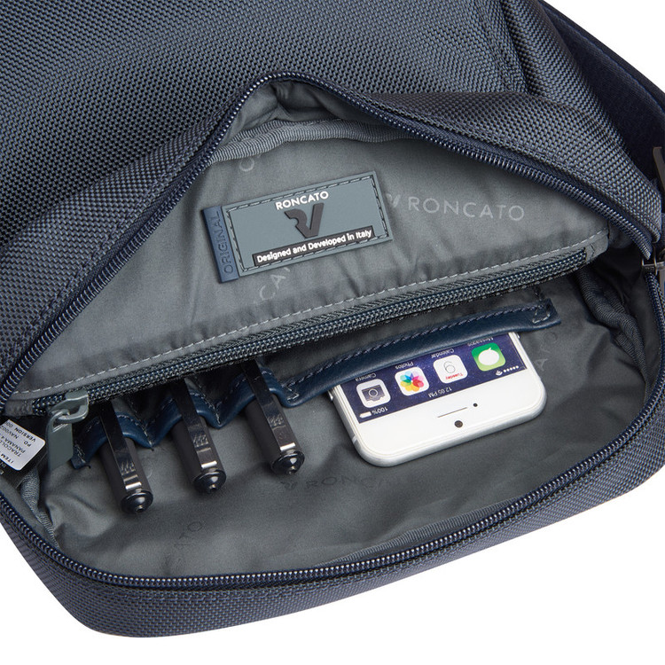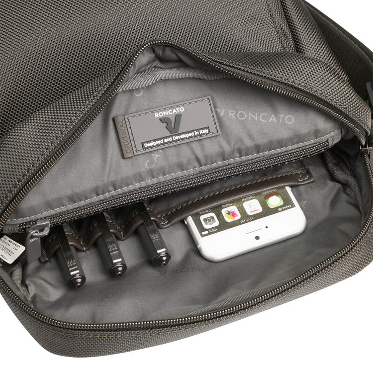 طراحی شده در ایتالیا فضای داخلی ( جیب گوشی هوشمند خودکار و محفظه های دیگر) ساخته شده از نیلون بالستیک مقاوم 1680 دنیر با رویه PVC بند دوشی مقاوم قابل تنظیم با یراق فلزی 3 سال گارانتی بین المللی فضای تبلت 11 اینچ دوتبله