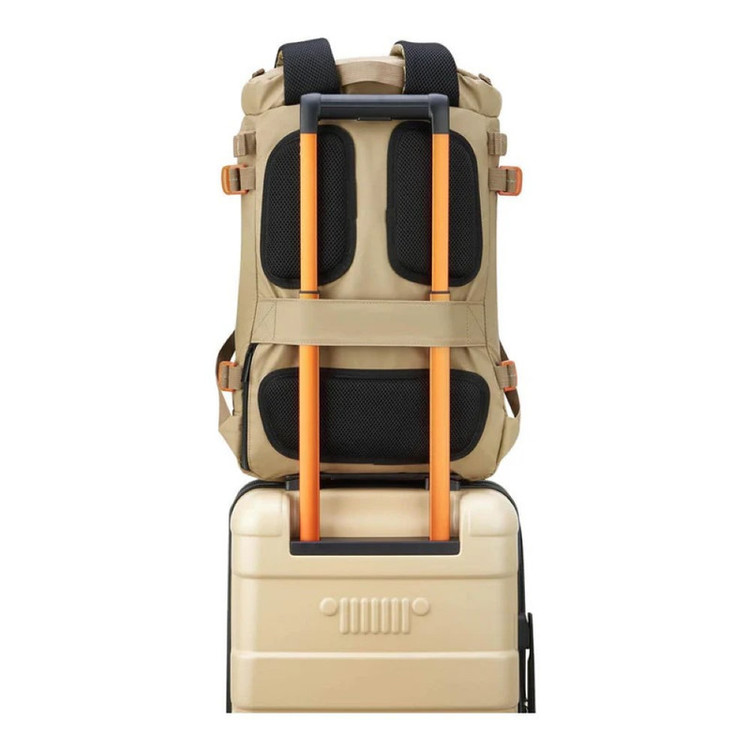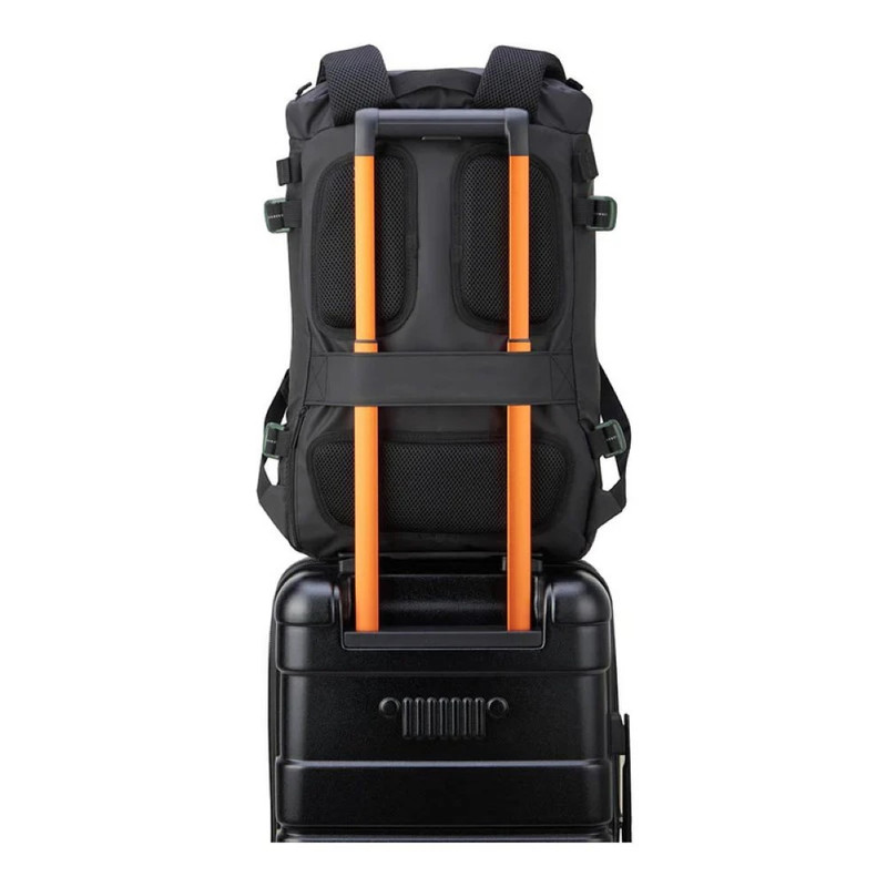 1-ابعاد محصول H 48.5 x L 32 x D 18 cm و وزن آن 600 گرم و حجم آن 28 لیتر است 2-طراحی استوانهای منحصربهفرد3-پارچه مقاوم در برابر آب 4-بندهای شانهای قابل تنظیم و پشتپوشی تنفسپذیر5-قابلیت اتصال به چمدان