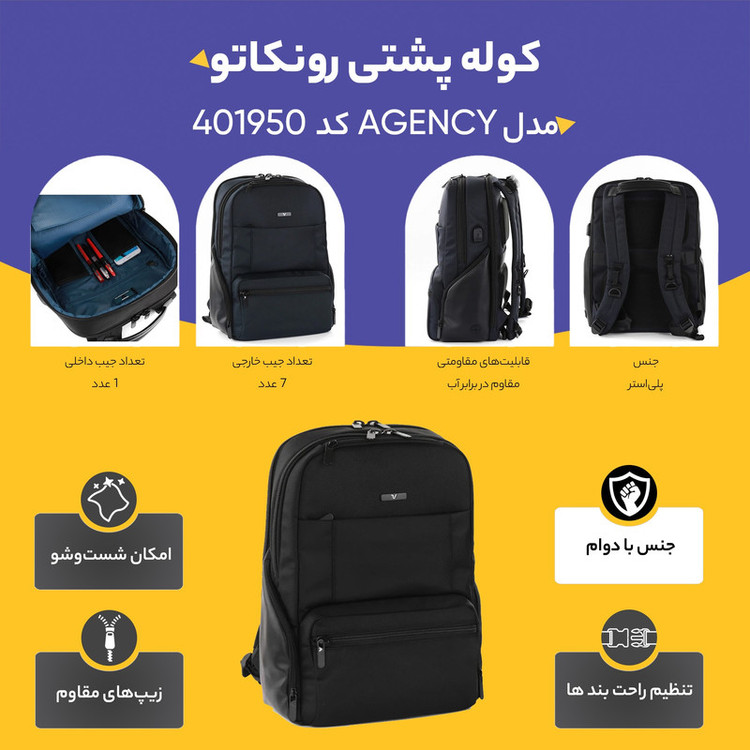 دارای سه سال گارانتی بین المللی. فضای لب تاپ 15.6 اینچ . فضای تبلت 10 اینچ . ساخته شده از پلی استر . طراحی شده در ایتالیا . درگاه USB . قابلیت قرارگیری بر روی دسته چمدان