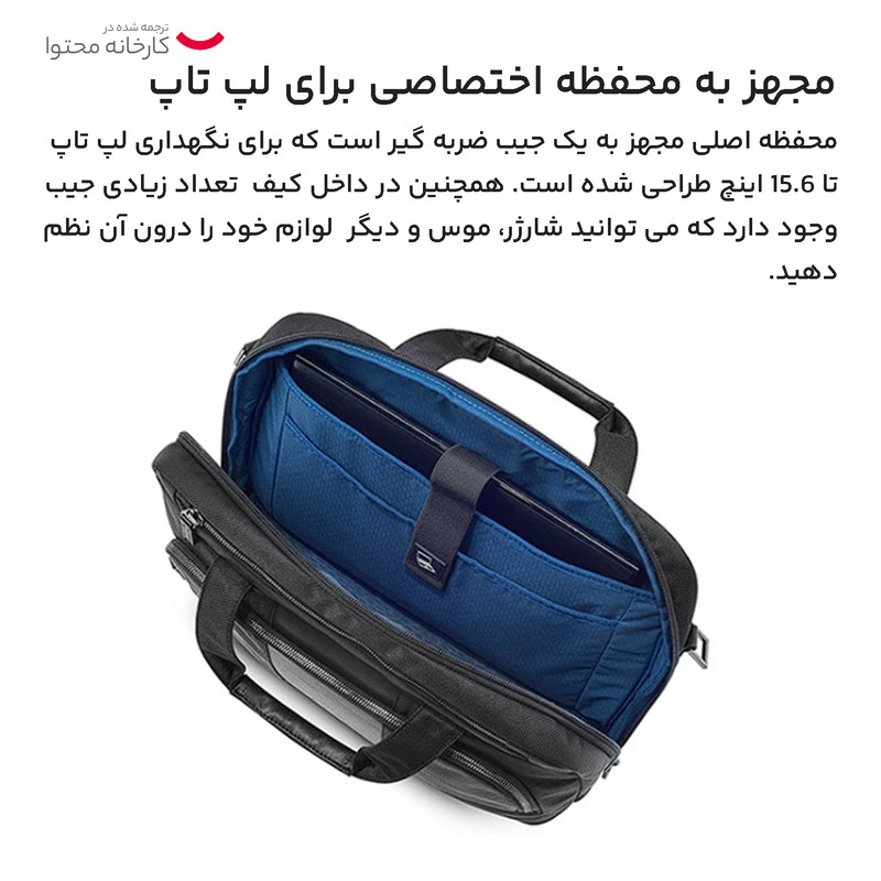 1-محافظت از رایانه شخصی 2-حفاظت از اطلاعات RFID 3-باسیستم TROLLEY سازگار است 5-جنس 80% نایلون + 20% چرم6-یک تبله