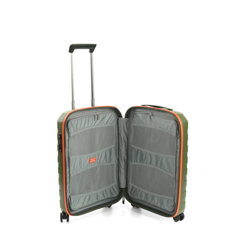 مجموعه Roncato Box Young بیانگر سبکی و قدرت است و رنگ های روشن و اشکال مدرن آن را منحصر به فرد و قابل تشخیص می کند. چمدان های سری باکس یانگ از پلی پروپیلن ساخته شده اند که ترکیبی از حداکثر سبکی و دوام فوق العاده است. دارای انعطاف پذیری، مقاومت در برابر تغییر شکل و سوختن است. پلی پروپیلن یک ماده 100٪ بازیافتی است، برای تولید به حداقل انرژی نیاز دارد و یکی از سبک ترین مواد در جهان است. بنابراین، این شرکت مراقبت از محیط زیست است. چمدان کابین تنها 2.2 کیلوگرم وزن دارد و به یک سازماندهی داخلی ساده مجهز شده است که به شما امکان می دهد حتی چیزهای ضروری بیشتری را در آن قرار دهید. این چمدان دارای زیپ افزایش حجم می باشد که بسیار کاربردی هست .