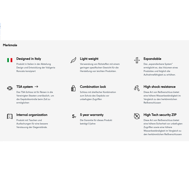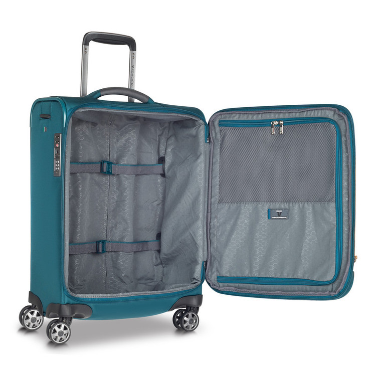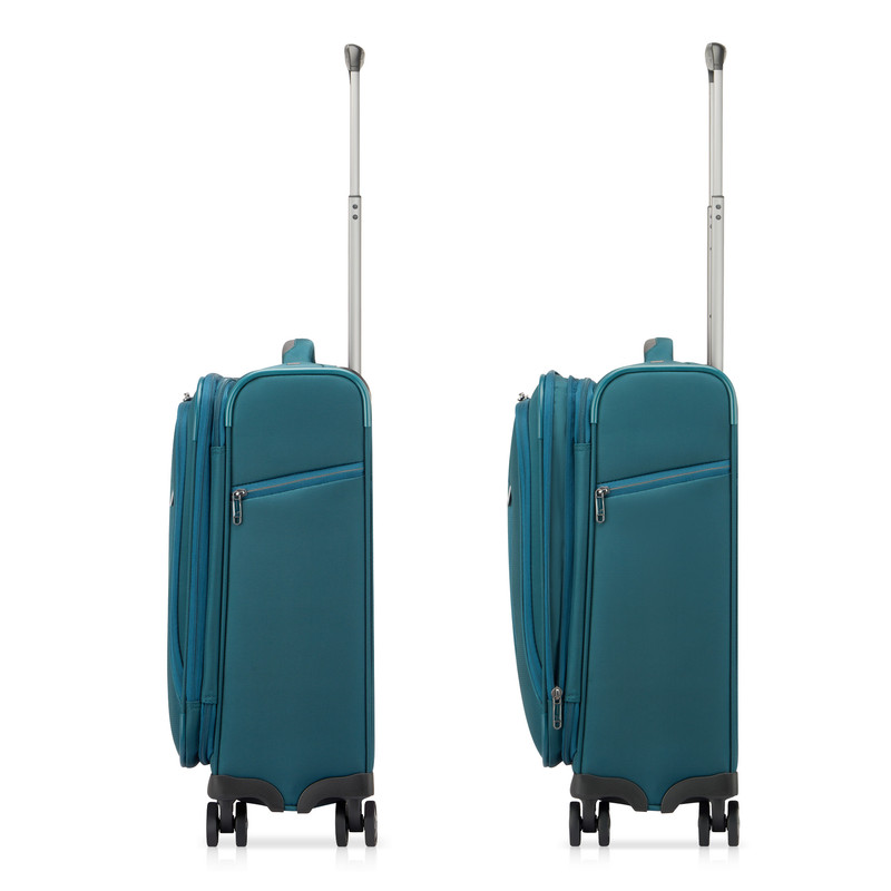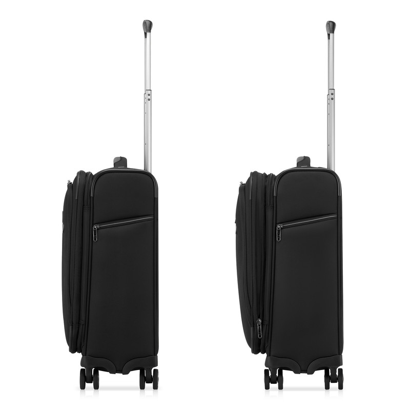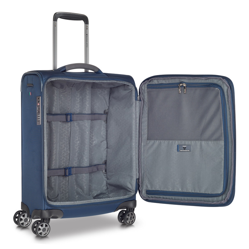 چمدان کابین Roncato City 3.0 با طراحی نرم (Soft Case) و ساخته شده از پارچه پلیاستر مقاوم، انتخابی عالی برای سفرهای طولانی است. این چمدان سبک، ضد آب و در برابر سایش و خط و خش مقاوم است. این محصول با حجم 40 لیتر (قابل افزایش تا 50لیتر) و چرخهای دوبل 360 درجه، حمل و نقل آن بسیار آسان و بیدردسر خواهد بود.ابعاد محصول 55x40x20/25 می باشد و وزن آن 2.6 کیلو گرم هست و حجم آن 40/50 لیتر با زیپ افزایش حجم است .ویژگی های آن عبارتند از جنس بدنه: پلیاستر مقاوم، سبک و ضد آب ، قفل TSA برای امنیت بیشتر در سفرهای بینالمللی، چهار چرخ دوبل 360 درجه برای حرکت روان، دسته تلسکوپی با قابلیت تنظیم ارتفاع، تقسیمبندی هوشمند داخلی با بند نگهدارنده لباس و جیبهای زیپی، زیپ Expandable برای افزایش فضای داخلی در مواقع نیاز، طراحی Soft Case مناسب کسانی که چمدان نرم را ترجیح میدهند،طراحی شیک و حرفهای ،مقاوم در برابر فشار و خط و خش ،حرکت روان و بیصدا با چرخهای دوبل ، دو بخش مجزا با زیپ کامل.این چمدان مناسب سفرهای طولانی و افرادی است که به دنبال چمدانی با کیفیت، جادار و با طراحی مدرن هستند. رنگ و ظاهراین چمدان بسیار زیبا و جذاب است و ظاهری کلاسیک و مدرن به آن میدهد. این رنگ مناسب افرادی است که به دنبال چمدانی با طراحی شیک و در عین حال متفاوت هستند.سطح چمدان دارای پوشش مات است که علاوه بر زیبایی، خط و خشها را کمتر نشان میدهد.افت بدنه به گونهای طراحی شده که در برابر خط و خشهای روزمره مقاومت کند، و در عین حال ظاهری نیکو و صاف داشته باشد.چمدان دارای 4 چرخ دوبل 360 درجه است که حرکت روان و بیصدا را فراهم میکند. این چرخها به راحتی از هر سطحی عبور میکنند و به شما اجازه میدهند که چمدان را در هر جهتی حرکت دهید.چمدان دارای زیپهای با کیفیت بالا است که علاوه بر امنیت، قابلیت افزایش فضا را نیز به شما میدهد. این ویژگی به شما اجازه میدهد تا حجم چمدان را تا 15 لیتر بیشتر افزایش دهید، برای زمانی که به فضای اضافی نیاز دارید.زیپهای امنیتی و سیستم قفل TSA نیز در طراحی ظاهری چمدان تعبیه شده است که باعث میشود چمدان از نظر امنیتی به شدت محافظت شود.در قسمت جلوی چمدان، لوگوی Roncato با طراحی ساده و مدرن قرار دارد که هویت برند را به خوبی نمایان میکند.