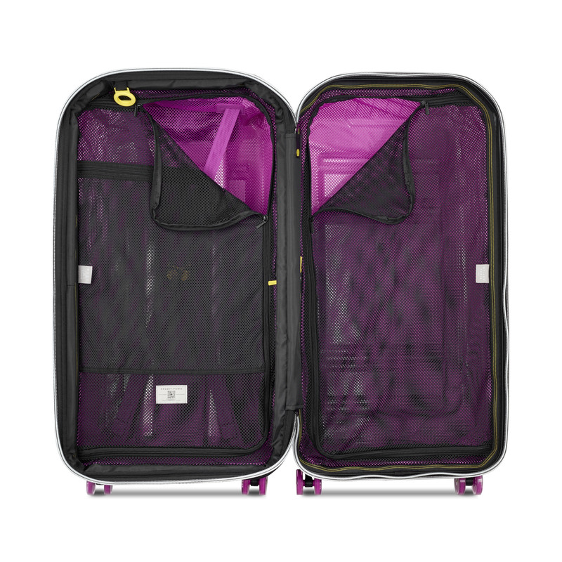 فضای داخلی چمدان به شکلی هوشمندانه طراحی شده و دارای فیکسچرها و تقسیمبندیهای مناسب است تا وسایل بهطور مرتب و منظم جایگذاری شوند.همچنین، آستر داخلی این مدل کاملاً جداشدنی و قابل شستوشو است که به حفظ بهداشت و تازگی چمدان کمک میکند.