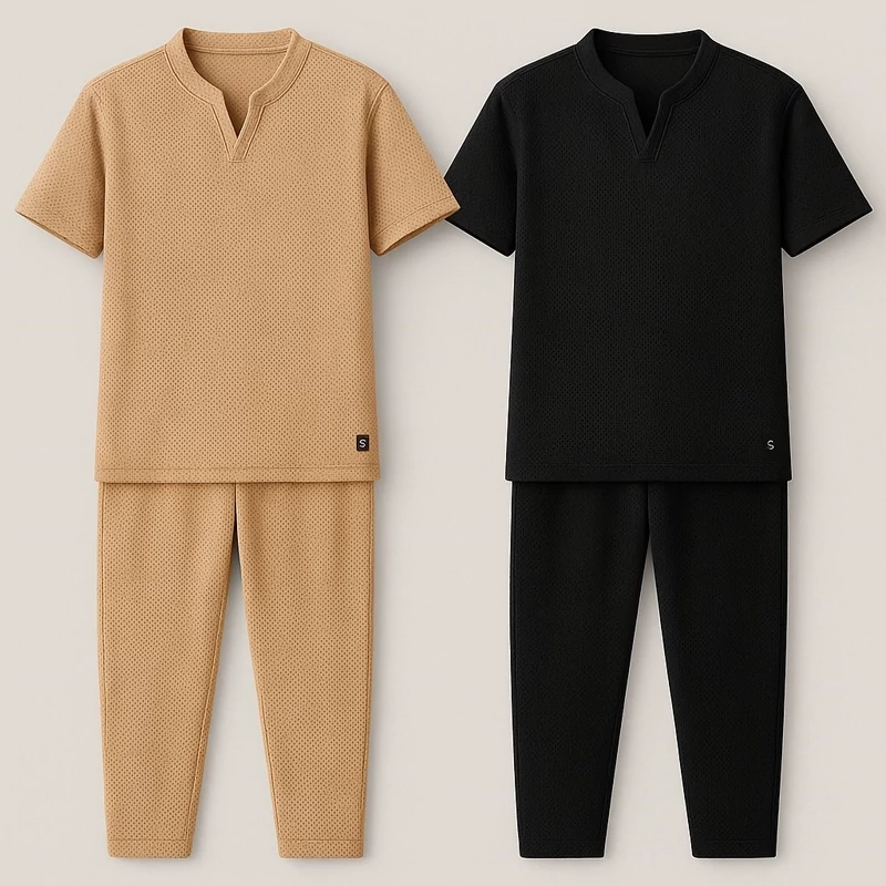 ست تیشرت شلوار مراکشی یقه کوبایی در 5 رنگبندی ( موجودی بروزه)
