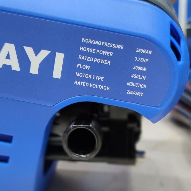 فشار ۲۵۰ بار نامی و ۱۵۰ بار واقعی، ۳۰۷ اسب بخار ، قدرت موتور ۳۰۰۰ وات ، مصرف آب ۴۵۰ لیتر دردقیقه ، ولتاژ برق ۲۲۰ ولت ، دارای دسته قابل حمل ، مجهز به فشار سنج ، قابلیت مکندگی آب از ( چاه ، تانکر ، و غیره ...) ، قابلیت سم پاشی و کارهای باغبانی.