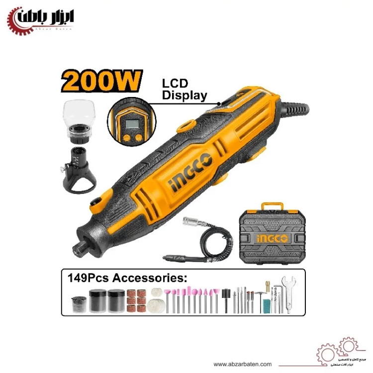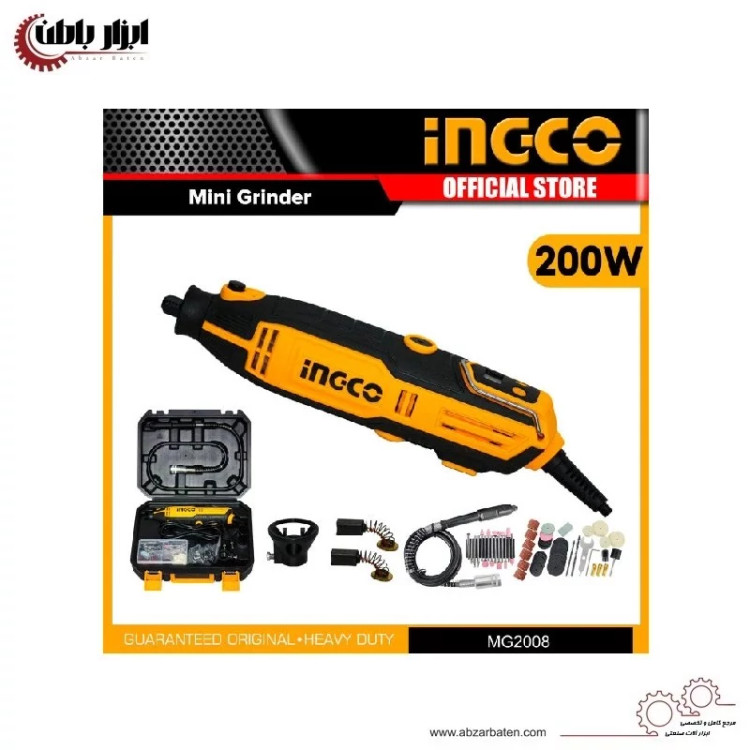 مینی فرز مینیاتوری انگشتی دیجیتال 200 وات اینکو مدل MG2008 موتور قدرتمند 200 واتی ولتاژ کاری 220-240 ولت سرعت گردش آزاد 10000-40000 دور در دقیقه قطر کولت اتصال 3.2 میلی متر مجهز به قفل اسپیندل صفحه نمایش دیجیتال کیف قابل حمل BMC دارای استاندارد CE اروپا ساخت چین با استفاده از تکنولوژی آمریکا