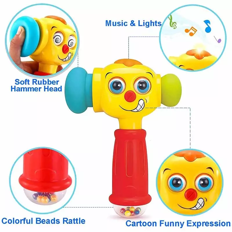 چکش خندان جغجغه اي هولي تويز، در کنار حالت موزیکال دارای چراغهای رنگی زیبایی نیز میباشد.
