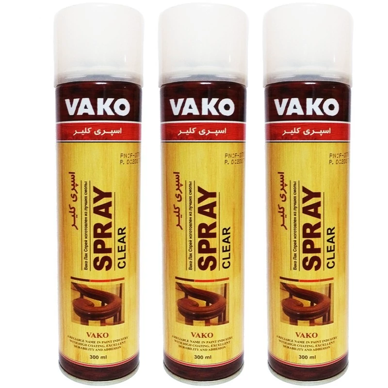 اسپری کلیر واکو (VAKO) از بهترین رزین جهت براق کردن سطوح و حفاظت آنها ساخته شده است.مقاومت در برابر رنگ پریدگی (عدم زرد گرایی - عدم مه آلودگی) که به دلیل رطوبت، گرما، و اشعه فرا بنفش اتفاق می افتد؛ فاقد اسید و زمان خشک شدن مناسب با چسبندگی عالی از ویژگیهای کلیر واکو می باشد.این اسپری را می توان تقریبا برای همه سطوح از جمله چوب، چرم، فلز، سرامیک، پلی استر و... استفاده نمود.