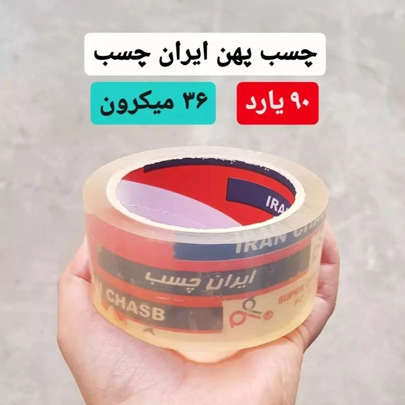 چسب پهن کریستالی ایران چسب عرض 5 سانت طول 90 یارد ضخامت 38 میکرون