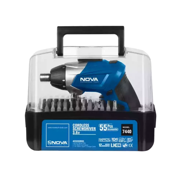 کیت پیچ گوشتی شارژی تاشو 3.6 ولت 55 پارچه نووا مدل 7440 (12 ماه گارانتی)