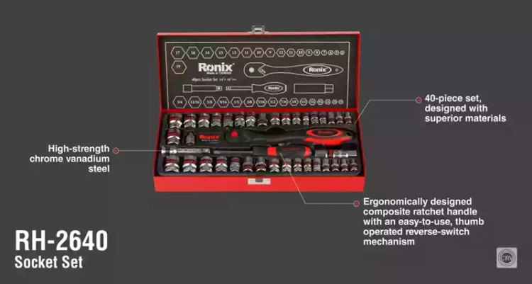 چه در حال انجام تعمیرات خانگی باشید، چه در کارگاه و چه در پروژههای صنعتی، RH-2640 با تنوع سوکتها، دوام بالا و طراحی ارگونومیک، همراه مطمئن شما خواهد بود. ترکیب دقیق قطعات و طراحی فنی هوشمند، این مجموعه را به یک انتخاب بیرقیب برای کسانی که کیفیت را در کنار کاربرد میخواهند، تبدیل کرده است.