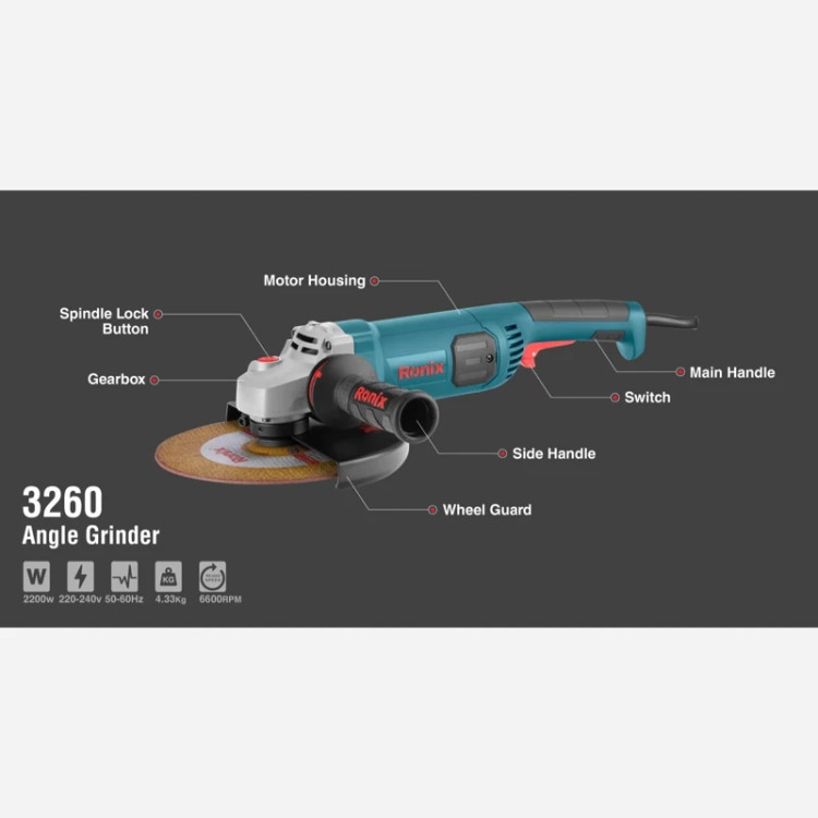 سنگ فرز سنگبری 230 میلیمتری 2200 وات صنعتی رونیکس مدل 3260 (12 ماه گارانتی)