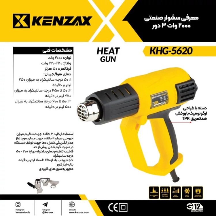 برای بررسی دقیقتر ویژگیهای فنی سشوار صنعتی 2000 وات 3 دور کنزاکس مدل KHG-5620 با ما همراه باشید.