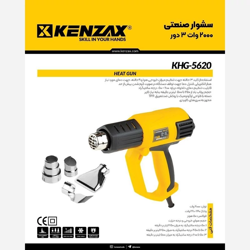 برای بررسی دقیقتر ویژگیهای فنی سشوار صنعتی 2000 وات 3 دور کنزاکس مدل KHG-5620 با ما همراه باشید.