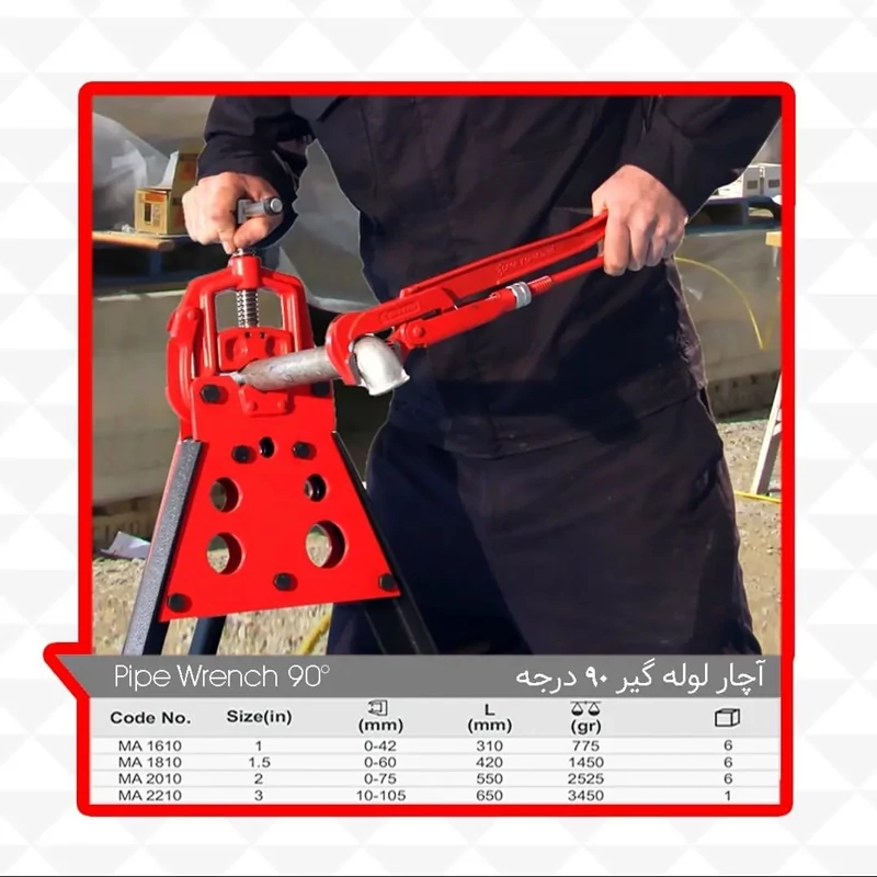 آچار لوله گیر 90 درجه ایران پتک سایز 2 اینچ