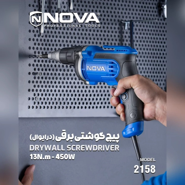 پیچ گوشتی برقی کلاچ دار (درایوال) نووا 450 وات مدل 2158 (12 ماه گارانتی)