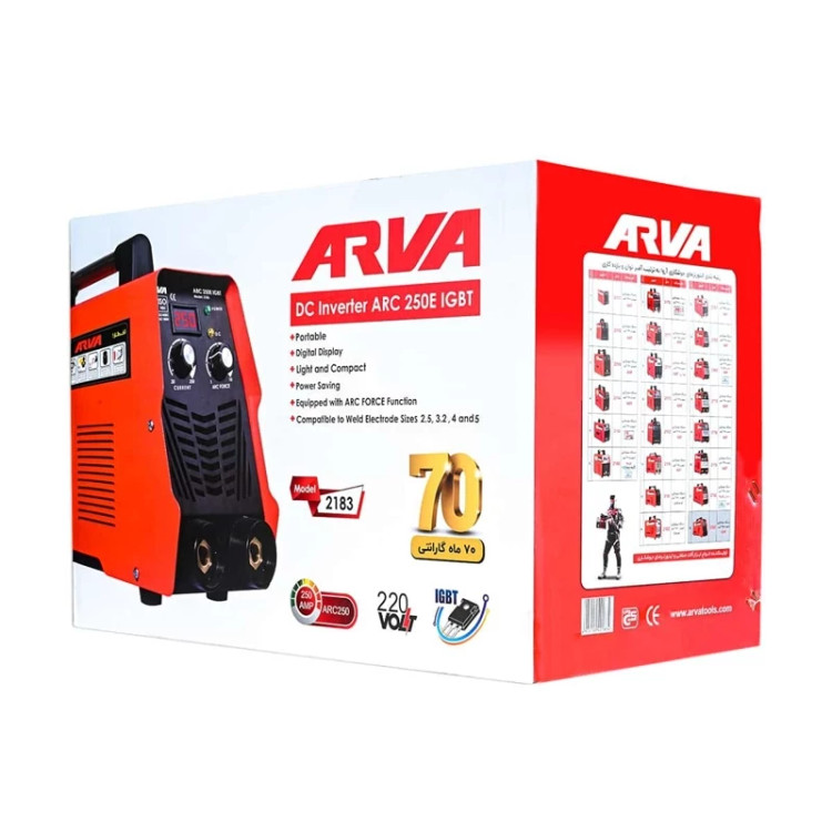دستگاه جوش ARC 250E آروا مدل 2183 (70 ماه گارانتی)(اینورتر جوشکاری)